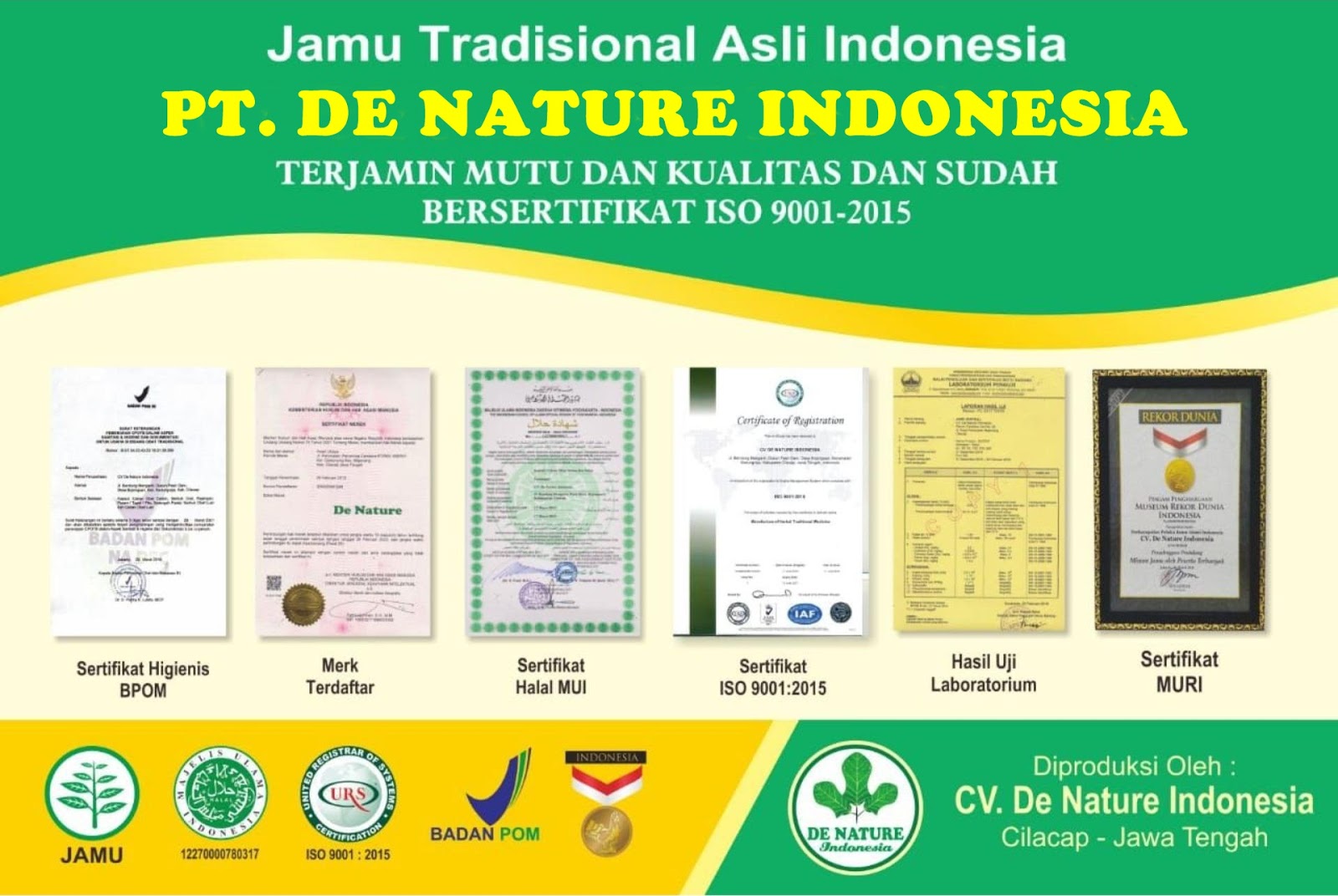 - Memiliki semua persyaratan sehingga lulus semua uji sertifikasi BPOM, kehalalan dari MUI. Serta dari dinas kesehatan RI