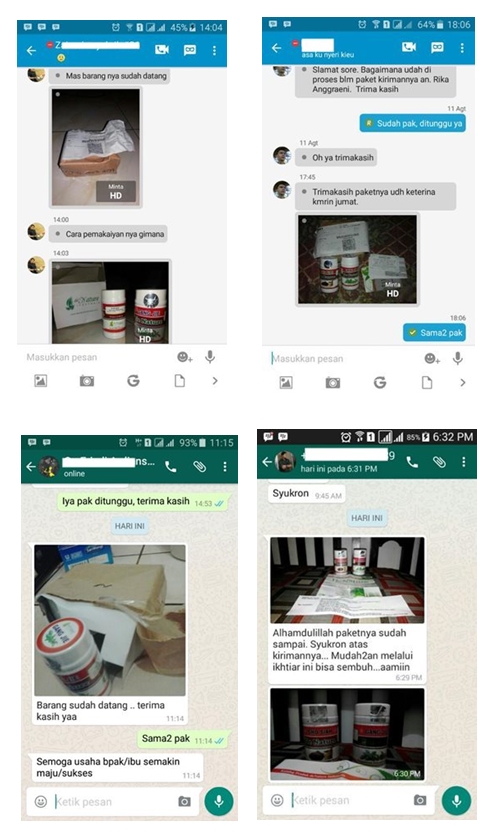 Berikut sebagian screnshot testimoni paket kami yang sampai kepada konsumen, semoga bisa menjadi bahan pertimbangan anda